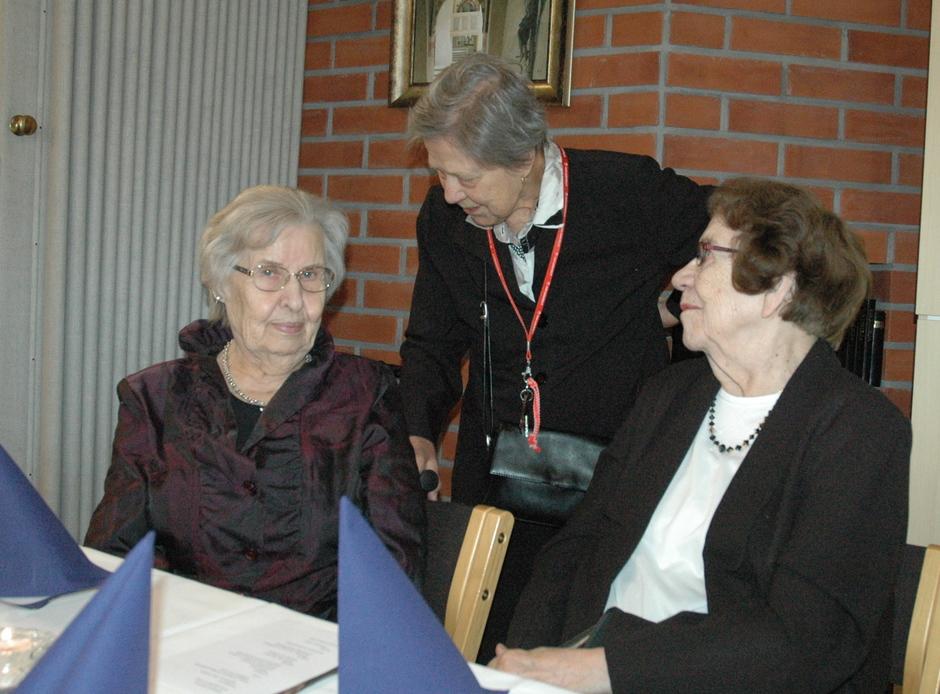 Tässä kolme yhdistyksemme ahkeraa kerholaista Aira Laaksonen, Hilkka Lehtonen ja Hillevi Haapanen. Kuva Raija Herrala-Nurmi